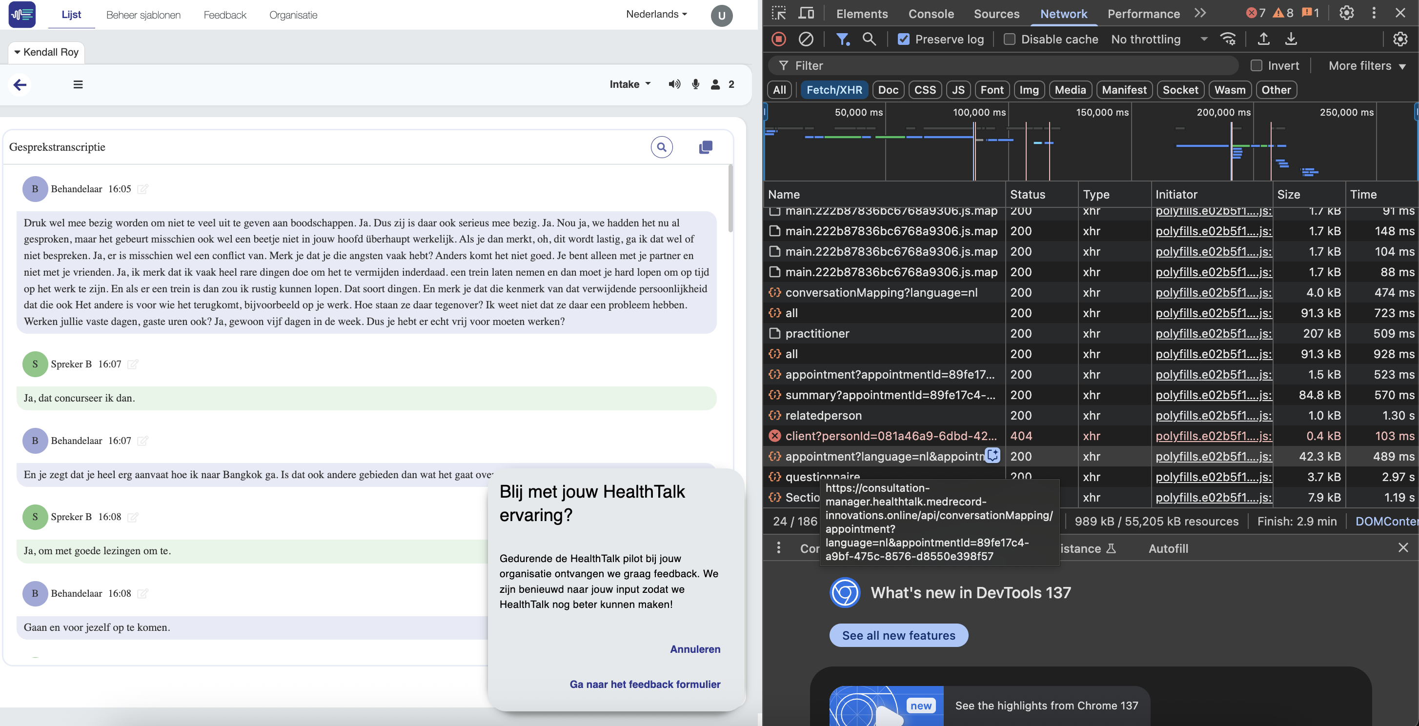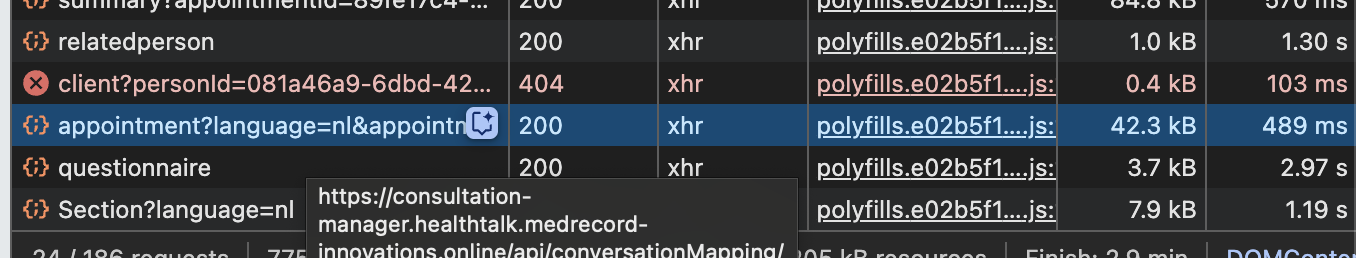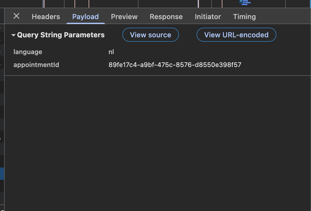 - Ga naar de regel die begint met "appointment" en klik vervolgens op Payload. Daar kan je de code kopiëren die staat achter "appointmentid".