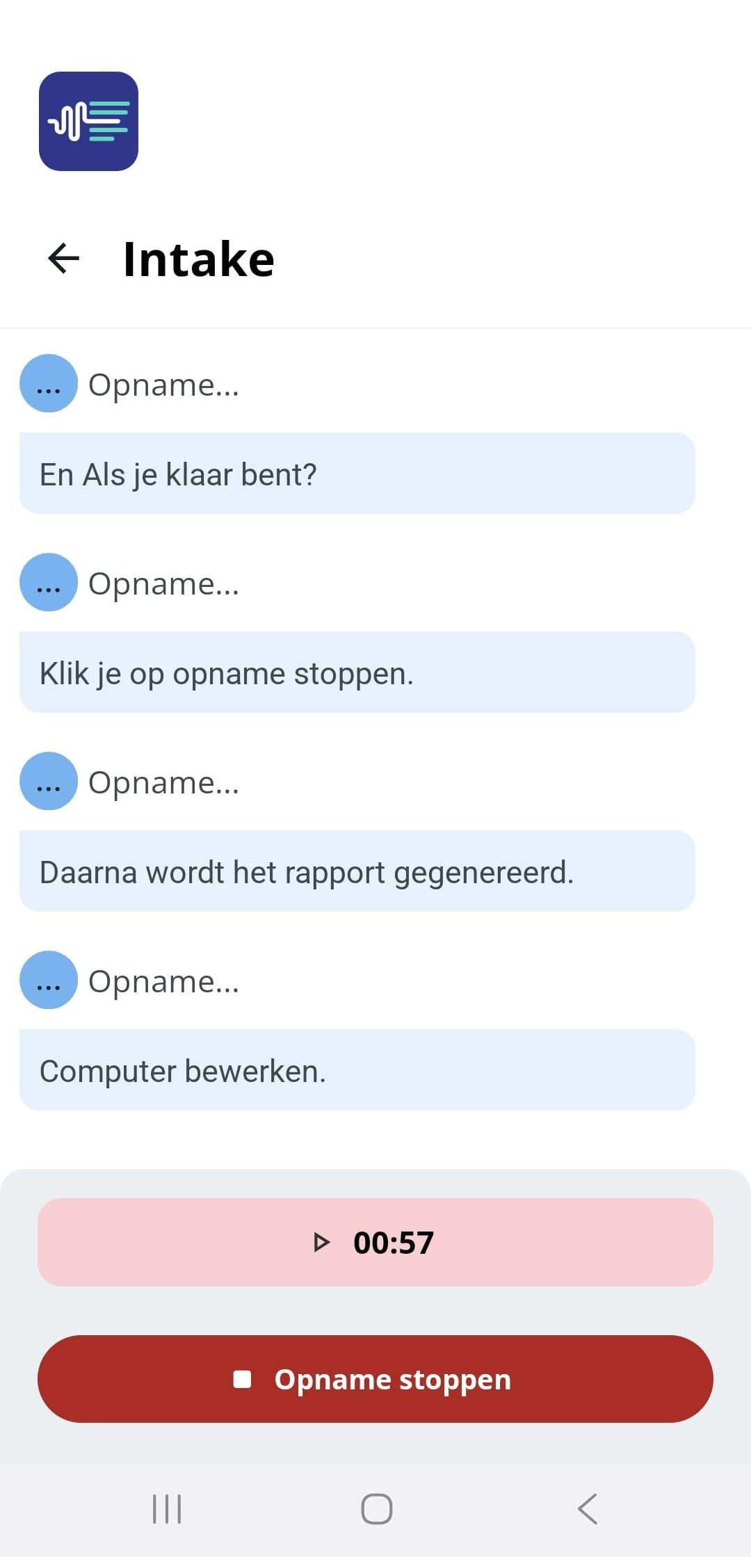 - Je kan het rapport en het transcript bekijken in de app. Bewerken is in de app niet mogelijk.