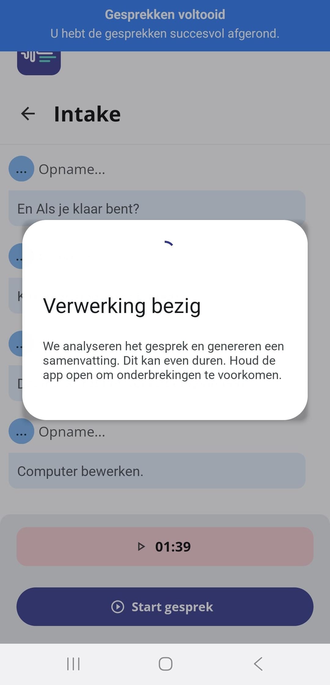 - Klik weer op ‘Start gesprek’ om de opname te starten.