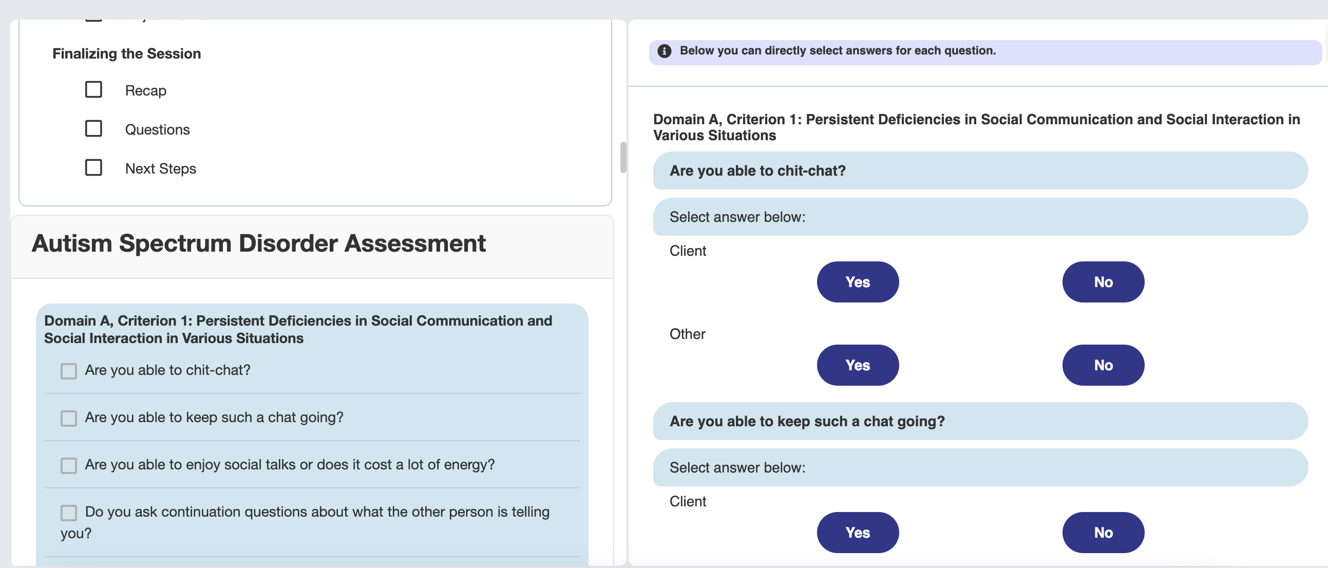 We hebben onze belofte waargemaakt! De vragenlijsten zijn nu naadloos geïntegreerd in de gesprekken: Voeg eenvoudig DSM-5, NIKA, PHQ-5, een Triage of een SCID-5-P vragenlijst toe aan je gesprek. Deze verbetering was op jullie speciaal verzoek, waardoor het eenvoudiger en sneller wordt om tijdens nauwkeurige inzichten te verkrijgen. 📋